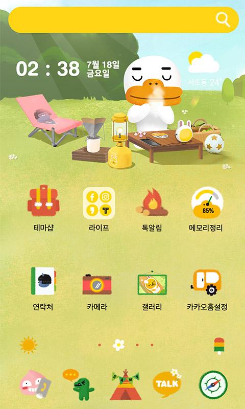 카카오홈 다운로드 하면 '카카오프렌즈 캠핑' 테마를 바로 적용할 수 있습니다.