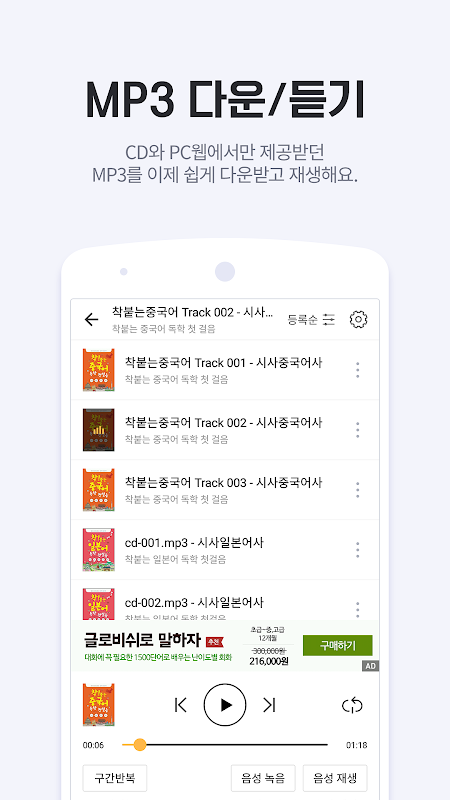 √ 전용 mp3 player, 동영상 player가 같이 있는 유일한 도서 APP