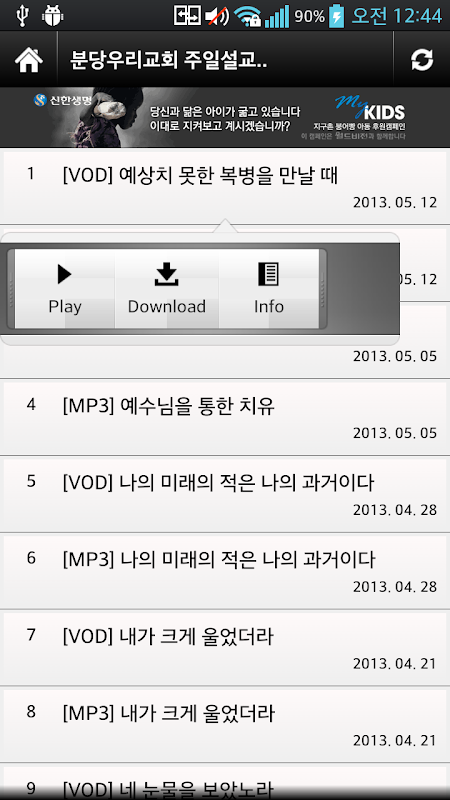 * 크리스찬 팟캐스트를 이용하시면 아래와 같은 방송을 들을 수 있습니다.