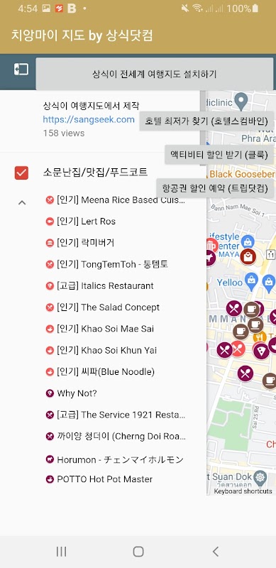 تھائی لینڈ چیانگ مائی ریستوراں، کیفے، سفر کا نقشہ