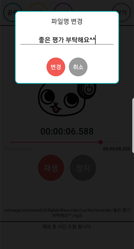 The recorder app. If you touch the rabbit character, you can run / stop recording.