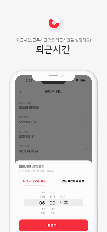 - اپنے کام کے دن کے آغاز سے آخر تک، 'کام کے ٹائمر' کے ساتھ رہیں۔ آپ بقیہ اور پچھلا وقت کو حقیقی وقت میں شروع کے مقررہ وقت سے لے کر کام چھوڑنے کے وقت تک چیک کر سکتے ہیں!