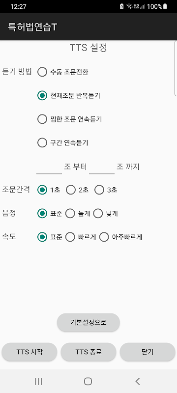 - 현재 조문 반복 듣기: 현재 선택된 조문을 무한 반복해서 들음