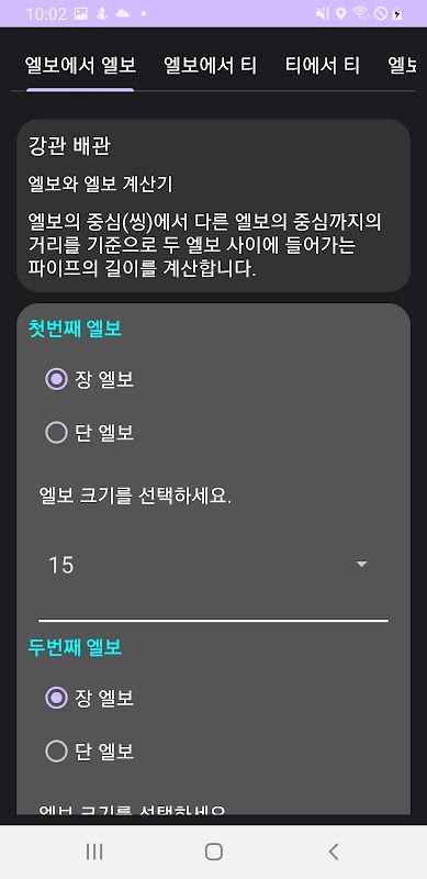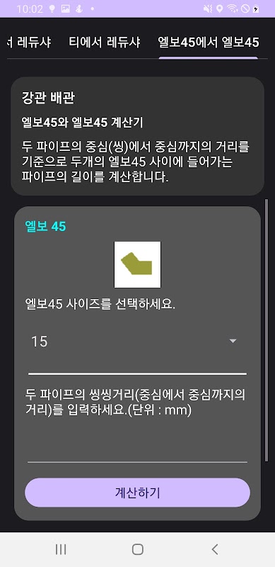 یہ ایپ دو پائپ فٹنگز کے درمیان پائپ کی لمبائی کا حساب لگاتی ہے۔