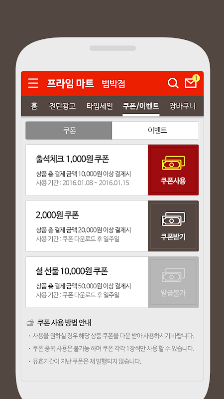 새로운 행사 알림이 있을때마다 빠르게 안내 받으실수 있으며 각종 쿠폰 및 포인트 카드도 이용이 가능하니 많은 이용 바랍니다.