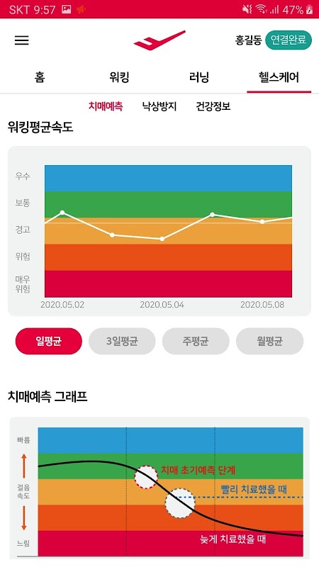 ‘ہوم’ ٹیب میں ، یہ امکانی طور پر سمارٹ انسوول پہنے ہوئے ہر طرح کی نقل و حرکت کی سرگرمی کی مقدار کا تجزیہ کرتا ہے اور اس کی اطلاع دیتا ہے۔ آپ اپنے یومیہ اور ماہانہ سرگرمی کے نمونے دیکھ سکتے ہیں جیسے چلنا ، دوڑنا ، کھڑا ہونا اور بیٹھ جانا۔
