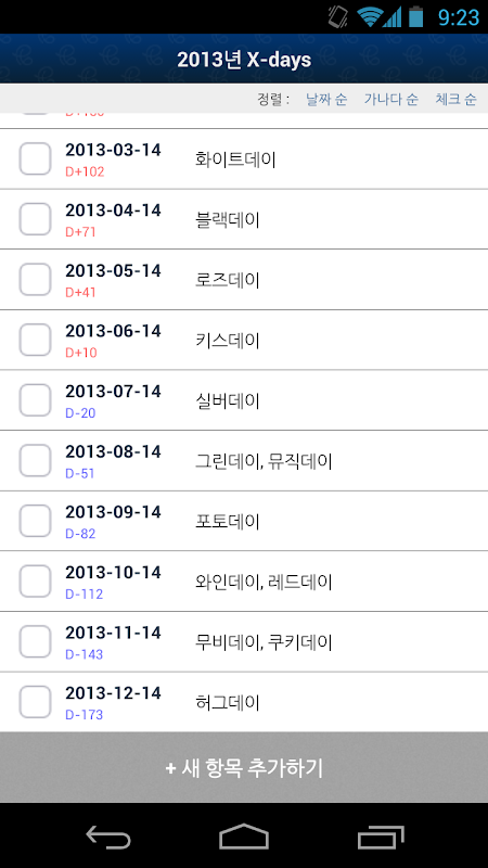 2013 X-days, 디데이, 메모, 버킷 리스트, 북마크(링크), 연락처, 예산 계획, 일정표, 장바구니, 체크리스트, 할일들, 웨딩 플래너, 출산 준비물, 여행 준비 등...
