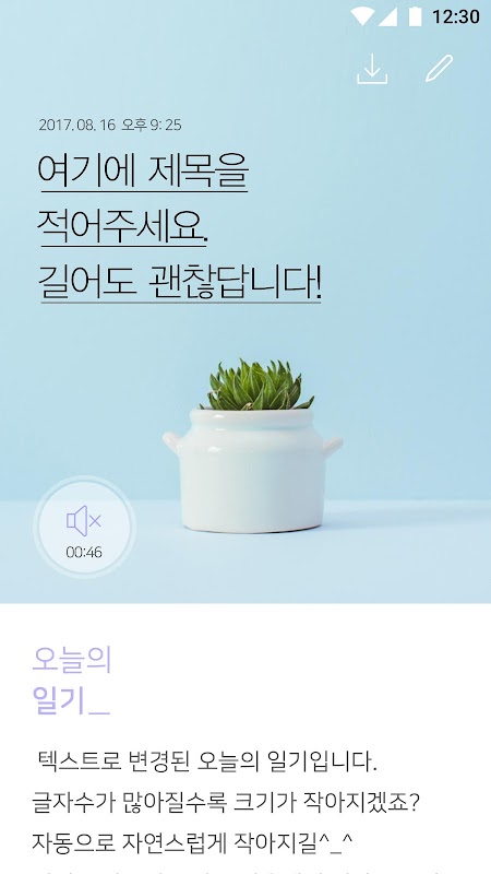 목소리로 일기 작성을 편리하게 도와주는 것과 더불어,