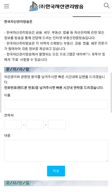 (주)한국자산관리방송은 법률 · 부동산 · 금융을 포함한 자산관리의 모든 정보를 제공하여 지식나눔을 실천하는 인터넷 스마트 전문 방송입니다.