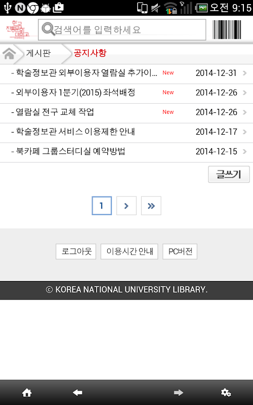 한국전통문화대도서관 모바일 전자도서관 시스템(NUCH Library)은