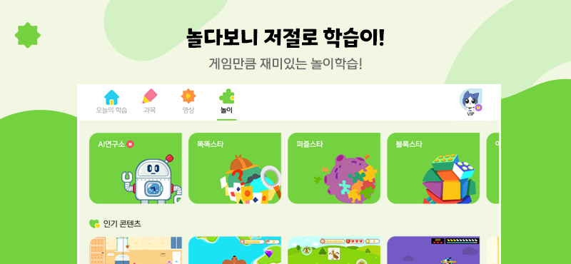 'آج کی تعلیم' میں حصہ لے کر، جو ہر روز کورین، انگریزی اور ریاضی میں سیکھنے کے مواد پر مشتمل ہوتا ہے، اور 'حاضری مشن' مکمل کر کے، آپ اسٹار پوائنٹ کے انعامات حاصل کر سکتے ہیں، لطف اندوز ہو سکتے ہیں، اور حوصلہ افزائی کر سکتے ہیں جب کہ خود ہدایت یافتہ سیکھنا ممکن ہے۔ !