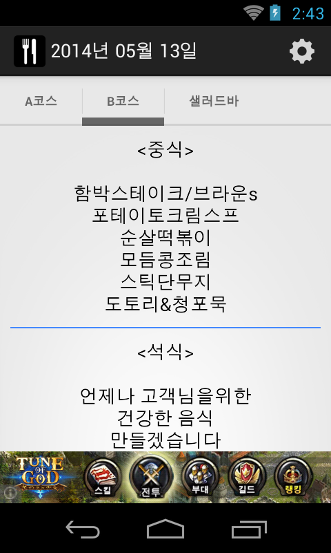 کے پرانے ورژن 한신IT타워 구내식당 식단표