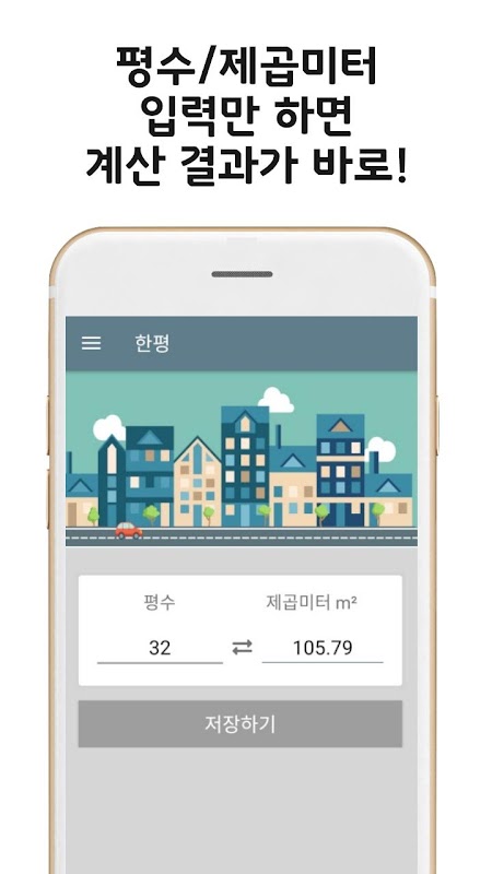 - 평/제곱미터 정보 기반으로 빠르고 정확한 단위 변환 계산 기능 제공