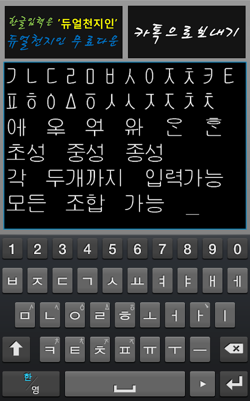 1. 한글을 합용병서로 입력하고 보낼 수 있는 어플입니다.