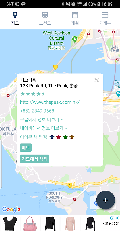 - 지도 (홍콩 지도, 지도 탐색 및 장소 저장)
