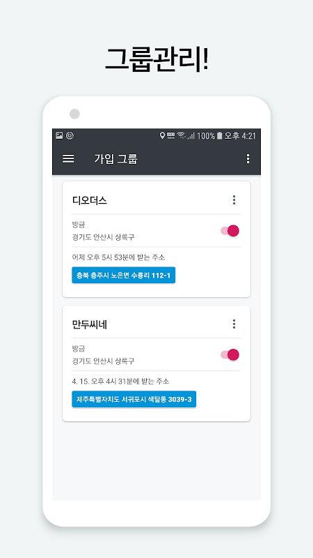 - 마지막 위치 전송 시간 및 내 위치의 주소
