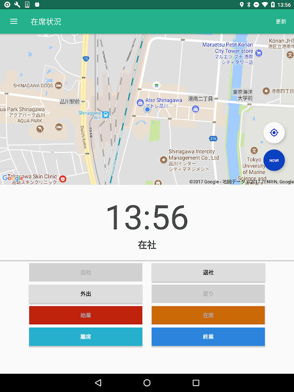 アプリ上の「NOW!」ボタンをタップすると、NI Collabo 360の行先伝言共有機能と連携し、現在地を記録・確認できるほか、メモや写真もアップロードできます。