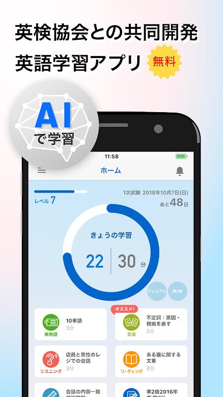 ◆ ایکن ایسوسی ایشن کے ساتھ مشترکہ طور پر تیار کردہ ایک سیکھنے کی خدمت ◆ آپ اپنے فارغ وقت میں Eiken® کا مطالعہ کر سکتے ہیں چاہے آپ مصروف ہوں! ◆ AI کے ساتھ موثر سیکھنا