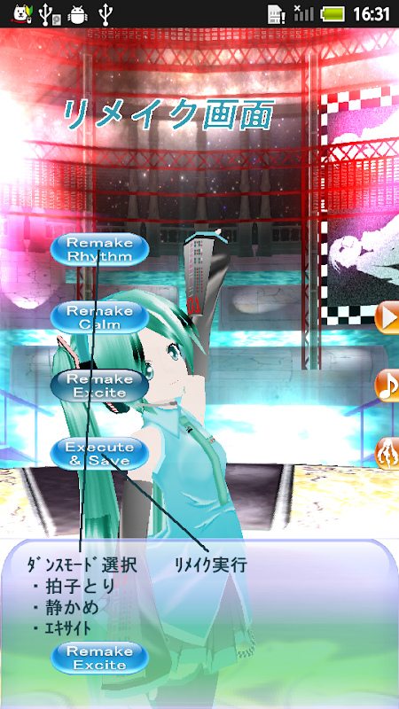 自動テンポ解析、ダンス作成の初音ミク・キャラクターダンスアプリです。端末の曲をかけるだけ。ミクミクダンス互換、MMDモデル/モーションが使用可能。