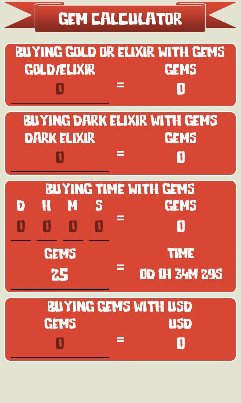 وسائل کی خریداری کے لms جواہرات کی آسانی سے تلاش کریں (سونا ، امیر ، تاریک امیر) ، جس میں وقت بھی شامل ہے ، اسی طرح جواہرات کو امریکی ڈالر میں تبدیل کرنا۔ اس حیرت انگیز ایپ کے ذریعے اپنے کلاش آف کلنس گیم سے پہلے منصوبہ بنائیں۔