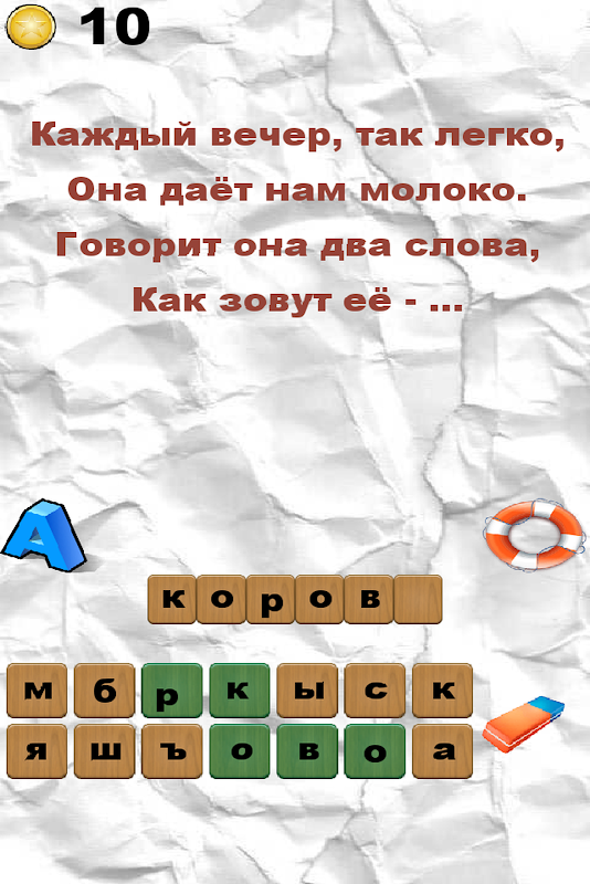 Алина:"СУПЕР-ПУПЕР Не знаю что сказать Игра просто супер просто там написано например знаком загадка отгадать написать получить монеты 10 руб. на 5 монет есть Например можно получить первую букву Ну короче рекомендую скачивать Офигеть Вообще супер супер супер пупер супер пупер супер пупер супер пупер супер пупер офигенная как супер-пупер Советую скачивать все это кто это игру Сделай Я их всех обожаю"