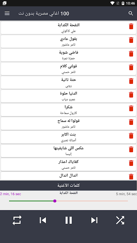 ایپلی کیشن میں 100 انتہائی شاندار مصری گانوں کو احتیاط سے منتخب کیا گیا ہے۔