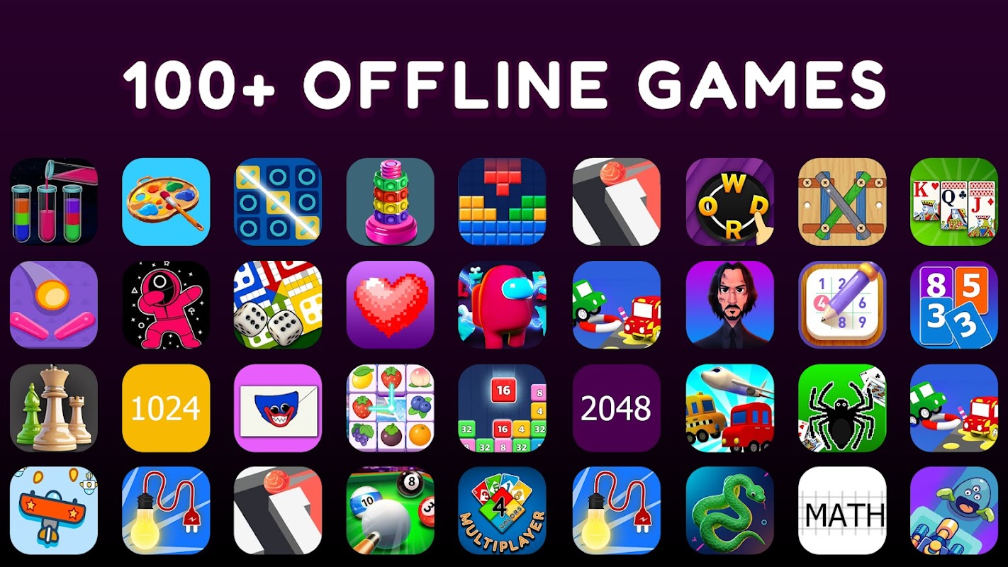 1 ایپ میں بہت سے آف لائن گیمز! اپنے پسندیدہ کھیلیں: پزل گیمز، 2 پلیئر گیمز!