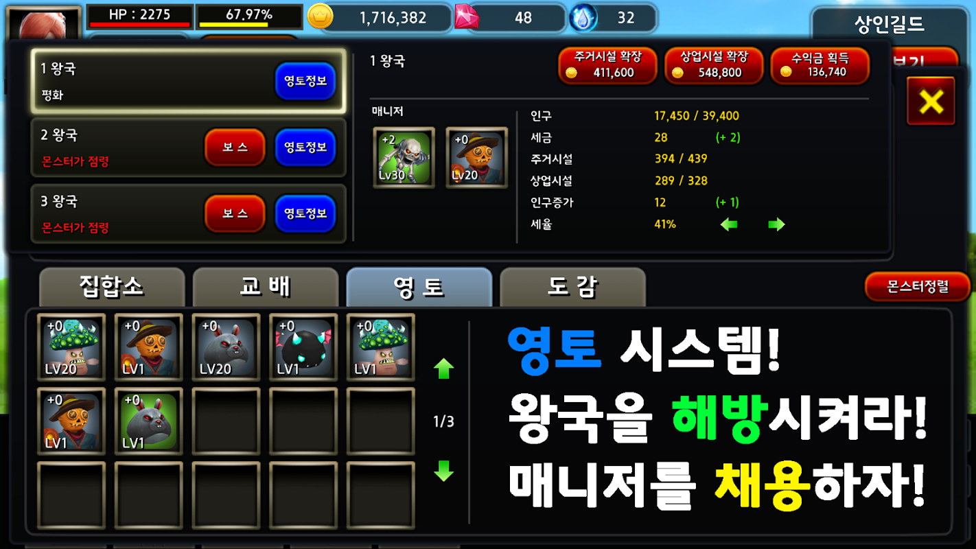 충분히 강해졌다면, 각 왕국을 점령한 몬스터를 물리치고 왕국을 해방치켜보세요.