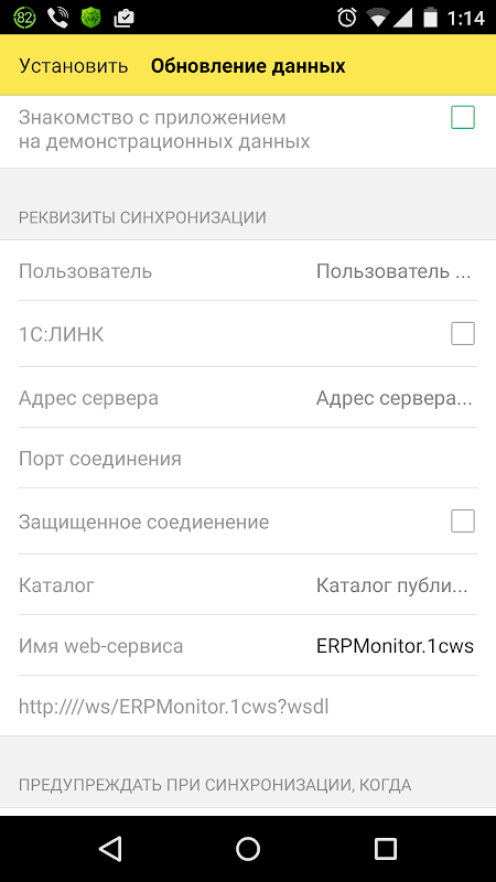 IMPORTANT! This application requires the boxed business application 1C:Enterprise 8. Trade Management 11.1 or later or 1C:ERP Enterprise Management 2.0. It also requires Internet connection. For the first synchronization, a WiFi connection is recommended.