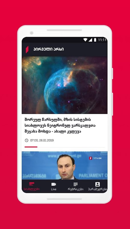 პირველი არხის ოფიციალური აპლიკაცია - Android OS