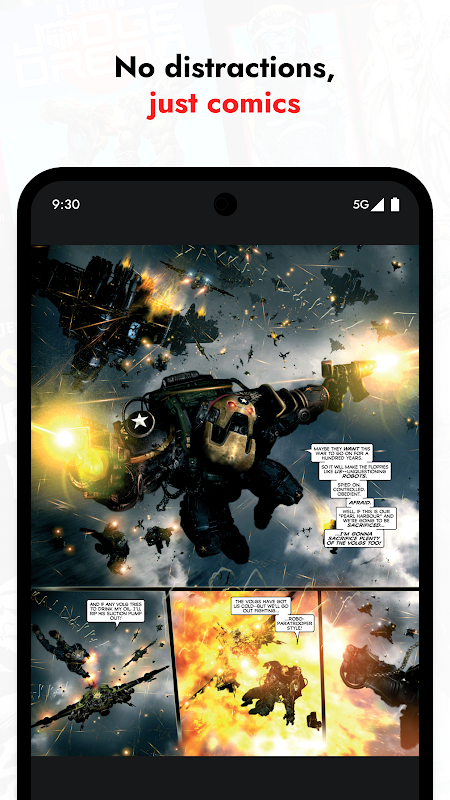 ایپ آپ کو پچھلے 37 سالوں کی کہانیاں جمع کرنے والے ڈیجیٹل گرافک ناولوں تک بھی رسائی فراہم کرتی ہے، بشمول مکمل سب سے زیادہ فروخت ہونے والی جج ڈریڈ کیس فائلز سیریز، جدید ترین جج ڈریڈ کی کتابیں، اور 2000 کے مزید کلاسک ٹائٹلز جیسے روگ ٹروپر، سلائن، اے بی سی۔ جنگجو، نکولائی ڈینٹ، اور روبو ہنٹر!
