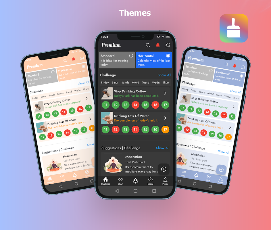 آپ پہلے سے موجود چیلنجوں میں مشغول ہوسکتے ہیں جو خاص طور پر آپ کو صرف 21 دنوں میں زندگی بدلنے والی عادات فراہم کرنے کے لیے بنائے گئے ہیں۔ فٹنس، خود کی دیکھ بھال، پیداواری صلاحیت یا ذاتی ترقی جیسے مختلف پہلوؤں پر کام کریں، یا اپنا چیلنج بنائیں جو آپ کے مقاصد کے مطابق ہو۔