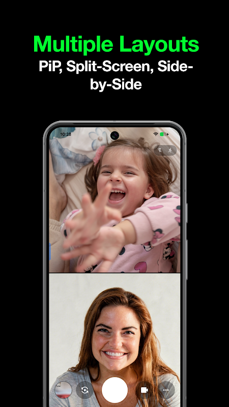 PiP یا Split کے ساتھ آگے اور پیچھے ریکارڈ کریں، ایک ہی شاٹ میں شیئر کریں۔