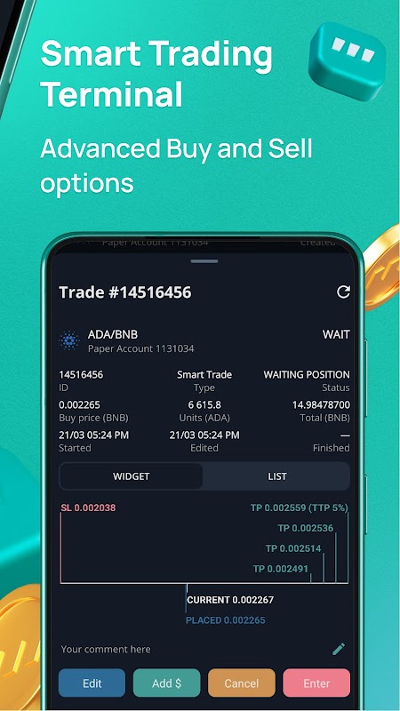 سب نے کرپٹو مارکیٹ کے اتار چڑھاؤ کے بارے میں سنا ہے۔ Ethereum یا دیگر کریپٹو قیمتوں میں تبدیلی کے وقت ڈیل کی اختتامی قیمت کو خود بخود تبدیل کرنے کے لیے ٹیک پرافٹ اور اسٹاپ لاس آرڈرز کے لیے ٹریلنگ ترتیب دیں۔ مثال کے طور پر، جب قیمت بڑھ جاتی ہے، ٹیک پرافٹ اور سٹاپ لاس کے آرڈرز ایک ساتھ بڑھ جاتے ہیں، جو کرپٹو ٹریڈنگ کو زیادہ خودکار اور آسان بنا دیتا ہے۔
