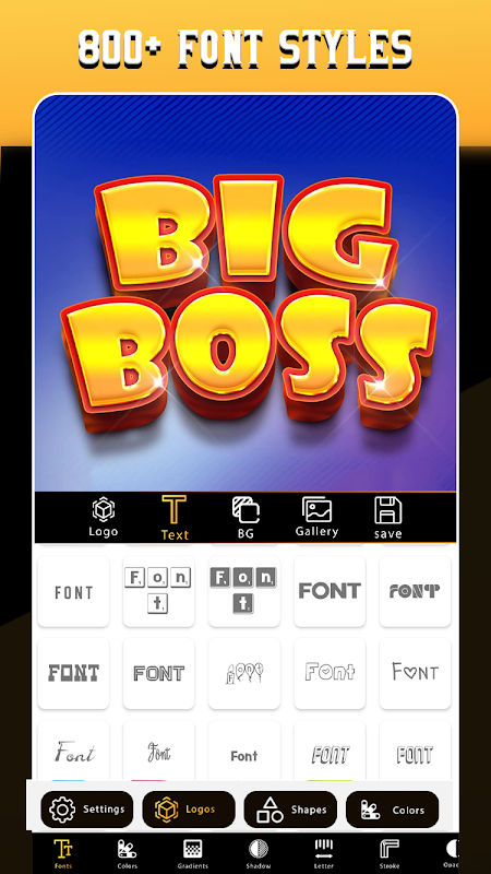 ٹیکسٹ ایڈیٹنگ کے بہترین آپشنز جو آپ اپنے ٹیکسٹ کو آزادانہ طور پر شامل یا ایڈٹ کرسکتے ہیں آپ اپنے ٹیکسٹ کا رنگ تبدیل کرسکتے ہیں اور آپ کسی بھی فونٹ اسٹائل کو استعمال کرسکتے ہیں جس میں بہت سے فونٹ اسٹائل ہیں آپ آسانی سے کسی بھی فونٹ کو لاگو کرسکتے ہیں جس میں 2D فونٹ اسٹائلز اور 3D فونٹ اسٹائلز شامل ہیں۔ اب تک کا سب سے بہترین ٹول آپ اسے فوٹو پر اسٹائلش ٹیکسٹ، فوٹو پر تھری ڈی اسٹائلش ٹیکسٹ کے طور پر استعمال کرسکتے ہیں کیونکہ آپ اپنی تصاویر، لوگو جنریٹر، لوگو پر تصویر لکھ سکتے ہیں، آپ اسے آئیکن ڈیزائنر بنانے والے کے طور پر استعمال کرسکتے ہیں یا آئیکن فری بنا سکتے ہیں۔ اب آپ کو بھاری ڈیزائننگ سافٹ ویئر استعمال کرنے یا اپنے یا آپ کے برانڈ کے لیے لوگو یا آئیکن بنانے کے لیے کسی پیشہ ور کی خدمات حاصل کرنے کی ضرورت نہیں ہے۔ یہ بہترین لوگو بنانے والا ہے - لوگو بنانے والا، لوگو جنریٹر اور لوگو ڈیزائنر، درج ذیل خصوصیات کے ساتھ لوگو کا نام بنانے والا: