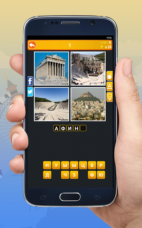 Правила очень просты: По 4 картинкам (фоткам) нужно отгадать объединяющее слово город или страны. Посмотрите на картинки – проведите аналогию и угадайте слово. Если вы застряли на каком-то уровне – не беда, используйте подсказки "Удалить ненужные буквы", "Вставить правильную букву" или "Показать слово".
