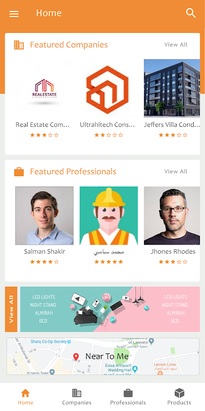 اس ایپلی کیشن میں کمپنیوں اور کاریگروں کی تعداد فراہم کرنے کا کام کیا گیا ہے اور تعمیراتی شعبے میں تعمیراتی مواد اور خصوصی معاملات اور خصوصی معاملات کی مصنوعات کو ظاہر کیا گیا ہے جس میں مکان کو اندرونی اور باہر سے تعمیراتی شعبے میں ایک مربوط رہنما بننے کی ضرورت ہے۔