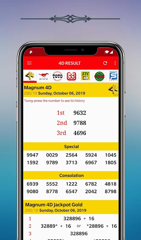 یہ ایپ ملائیشیا اور سنگاپور میں لاٹری کے تازہ ترین نتائج فراہم کرتی ہے۔