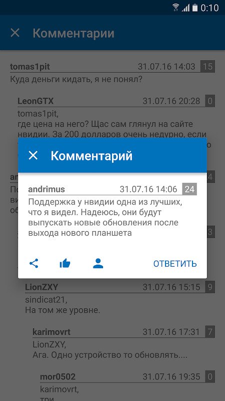 Чтение новостей сайта 4PDA и комментариев к ним.