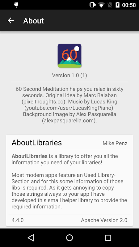 If you sometimes feel overwhelmed by it all, 60 Second Meditation can help you let go of a thought that's bothering you in as little as 60 seconds. It nudges you to get your priorities straight - you'll realize that the thought you're hung up on is really not that bad. Hopefully, you'll feel relaxed and refreshed afterwards and are able to carry with what really matters in life. While 60 seconds doesn't sound like much, you really have to try it to believe it!