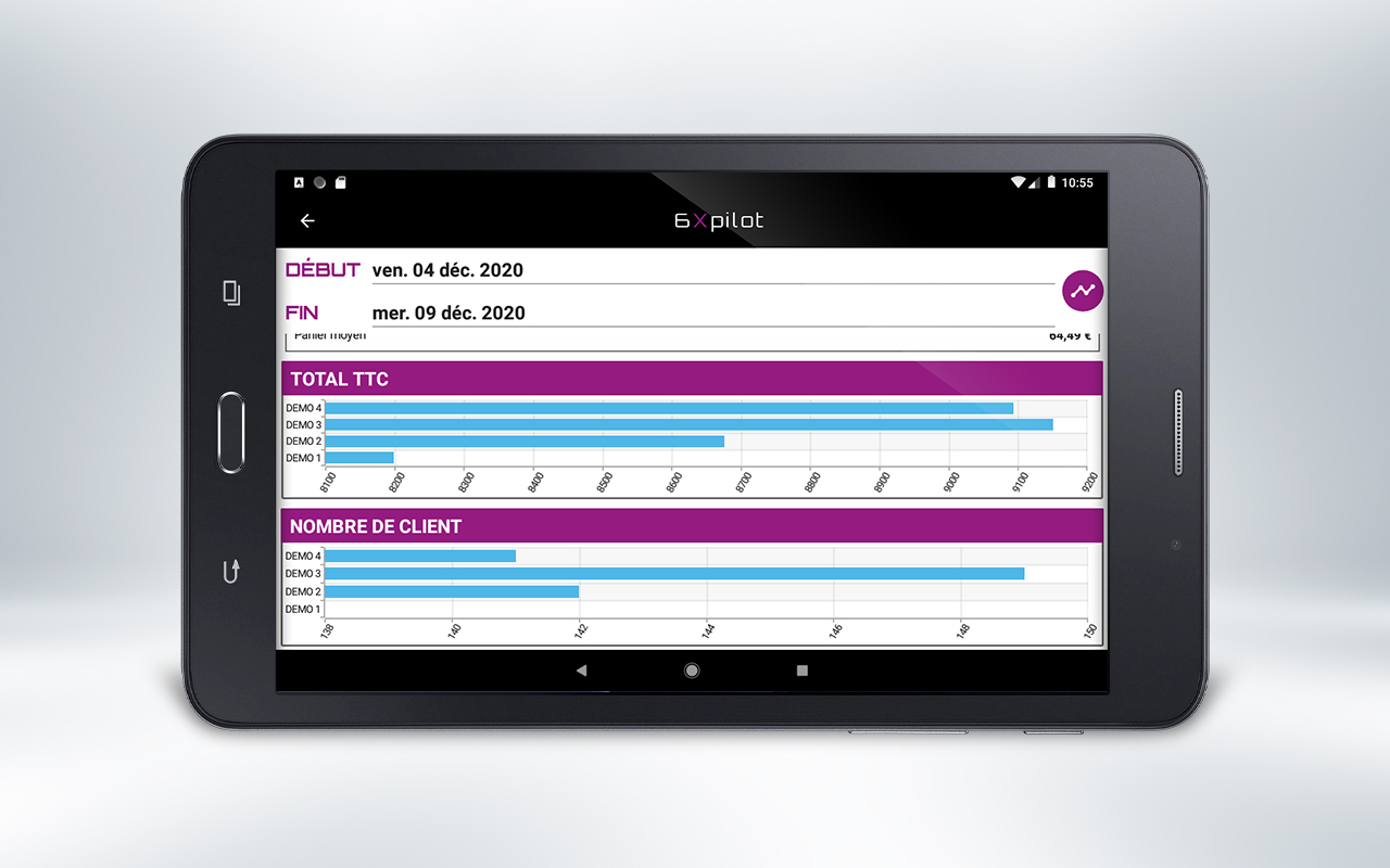 6 ایکس پائلٹ کا شکریہ ، آپ جہاں بھی ہوں اور کسی بھی ڈیجیٹل میڈیم (لیپ ٹاپ ، ٹیبلٹ ، اسمارٹ فون ، وغیرہ) سے اصل وقت میں اپنے آپریٹنگ کے اعداد و شمار تک رسائی حاصل کریں۔ چاہے یہ ایک ہی سائٹ ہو یا متعدد پوائنٹس فروخت ، اپنے کاروبار کو کنٹرول کرنے کے لئے ضروری تمام آپریٹنگ ڈیٹا تک رسائی حاصل کریں۔