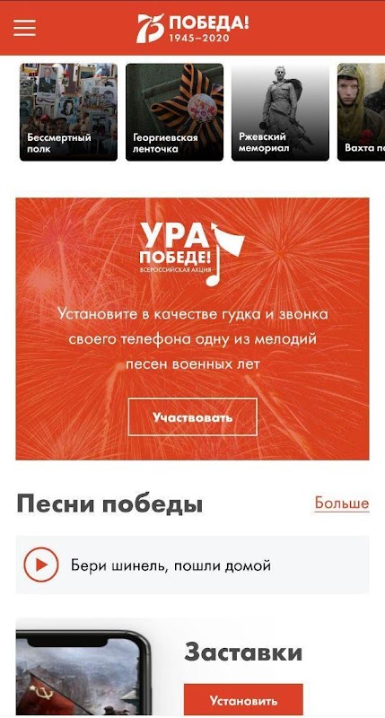 موبائل فون استعمال کرنے والوں کے لئے آل روسی مہم۔ اس کی مدد سے آپ اپنے موبائل فون کے بیپ پر ایک وکٹوری کا مقبول گانا سن اور انسٹال کرسکتے ہیں۔