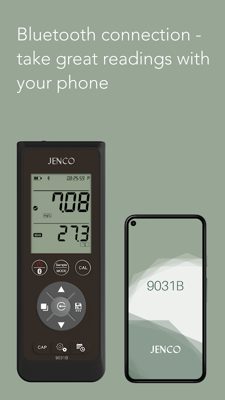 Jenco 9031B ایپ بلوٹوتھ کے ذریعے Jenco کے جدید ترین پروفیشنل پورٹیبل ODO/درجہ حرارت میٹر کے ساتھ جڑتی ہے تاکہ اضافی ڈیٹا اسٹوریج اور ڈیٹا شیئرنگ کی فعالیت کو فعال کیا جا سکے۔