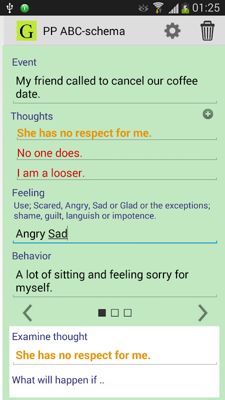 To create and learn from ABC schema s. Among others for cognitive behavioral therapy (CBT)