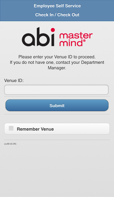 The ABIMM RT app allows authorized employees of licensed ABI clients to check in / check out for their work shifts at locations approved by their employers. Use your existing ABI MasterMind® ESS credentials to sign in and utilize this portable terminal.