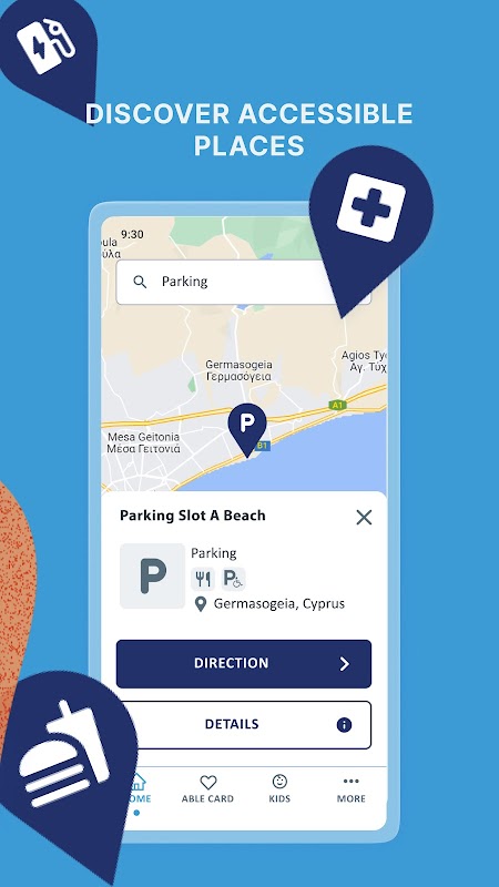 اگر کوئی جگہ آپ کے لیے قابل رسائی ہو تو کام کرنے کے لیے درکار تفصیلی معلومات فراہم کرنا۔ ہر ایک کی رسائی کی ضروریات مختلف ہوتی ہیں، یہی وجہ ہے کہ ہم ہر ایک مقام کو ذاتی طور پر دیکھنا چاہتے ہیں کیونکہ تفصیلی درست معلومات کا ہونا بہت ضروری ہے۔ ہمارا مقصد ہے کہ قبرص میں ہر کمپنی ان سہولیات کا مظاہرہ کرے جو وہ معذور افراد اور کمزور گروپوں کو فراہم کرتی ہے، اور انہیں اضافی فوائد فراہم کرتی ہے جیسے ہمارے لائلٹی کارڈ، ایبل کارڈ کے ذریعے رعایت۔