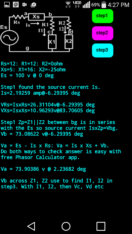 This app can do series ac circuits, parallel ac ciruits if Rs and Xs are set to 0 and series parallel ac circuits. You put in the circuit resistors and reactances and the app will guide you step by step through combining impedances to solving for all the phasor currents and voltages in the circuit. Save time on homework and get better understanding of the circuit solution process.