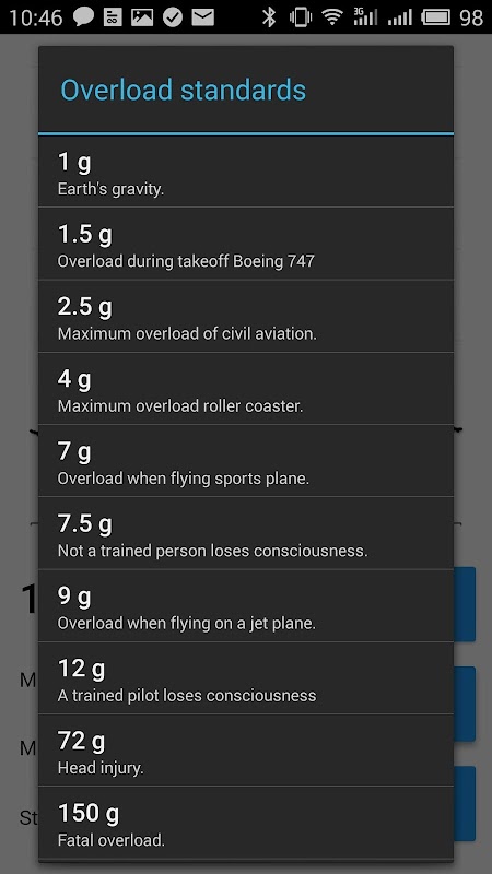 Measurement overload your smartphone or tablet. The measurement of acceleration.