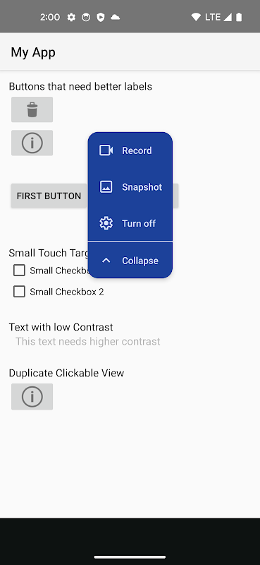• جس ایپ کو آپ اسکین کرنا چاہتے ہیں اس پر نیویگیٹ کریں اور فلوٹنگ ایکسیبلٹی اسکینر بٹن کو تھپتھپائیں۔