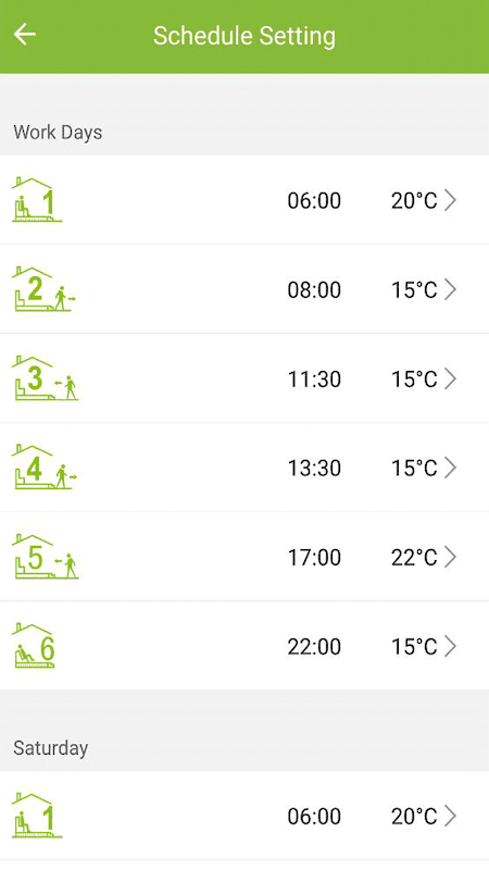 Set six periods schedule and temperature or create a specific schedule for when you're on